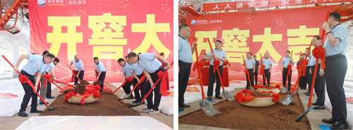 吉時(shí)一到,一面“開窖大吉”巨幕從池口上方倏然拉開,鄭步軍、張德佳邀請(qǐng)市場(chǎng)嘉賓揮锨起醅,在一聲聲激揚(yáng)的吉祥話中,基地22800口窖池全面進(jìn)入頭排酒開窖生產(chǎn)階段。