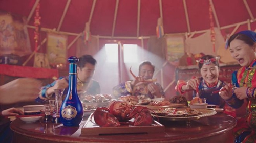 蒙古包內,男子接過快遞,大家圍坐在一起吃著海鮮大餐,喝著“夢之藍M6+”,其樂融融;全家人在沙灘上舉杯“夢之藍M6+”慶祝新年,把趕著回家的路程,變成感動一家的旅程……人間的多姿多彩,讓電視機前的動畫人物們流露出羨慕的目光。