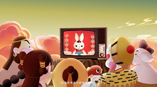 短片開場,孫大圣幾人一道加?熱鬧的天界聚會,收看兔年新春特別節?。電視機中傳來兔子的播報聲:人類,因為有了一種名叫夢想的東西,開始變得強大起來,而人間也因此發?了前所未有的變化……緊接著,畫面瞬間切換到人間,將大家緩緩帶入高速發展的新時代。